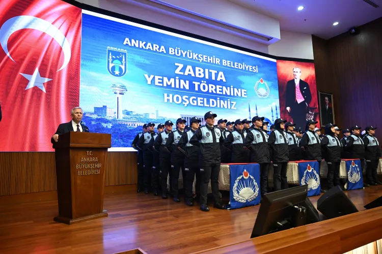 Ankara Büyükşehir Belediyesi'nde aday memurluk süreçleri tamamlanan personeller yemin töreni heyecanı yaşadı. 46'sı kadın, 64'ü erkek olmak üzere toplam 110 zabıta memuru yemin ederek resmen göreve başladı.