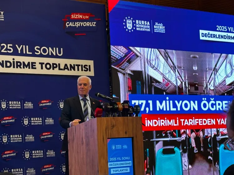 Bursa Büyükşehir Belediye Başkanı Mustafa Bozbey 2025 Yıl Sonu Değerlendirme Toplantısı'nda belediyenin hayata geçirdiği projeleri ve kentin geleceği için yapılan çalışmaları paylaştı. Şeffaflık ve hesap verebilirlik vurgusu yapan Başkan Bozbey, şehrin sorunlarına çözüm üreten projeler anlattı.