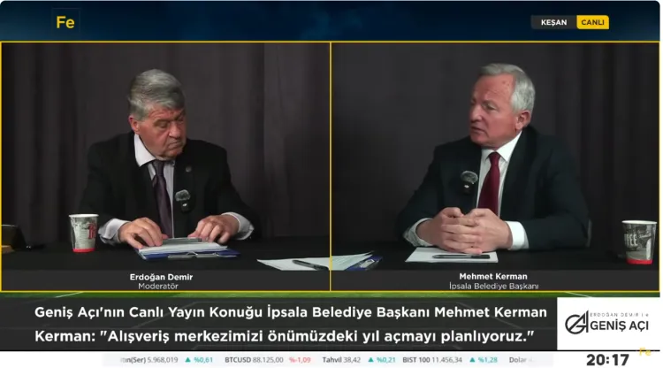 EDİRNE (İGFA) - İpsala Belediye Başkanı Mehmet Kerman, FE TV'de Erdoğan Demir'in sunduğu "Geniş Açı" programında ilçenin gelişim sürecini ve geleceğe yönelik yatırımları değerlendirdi.