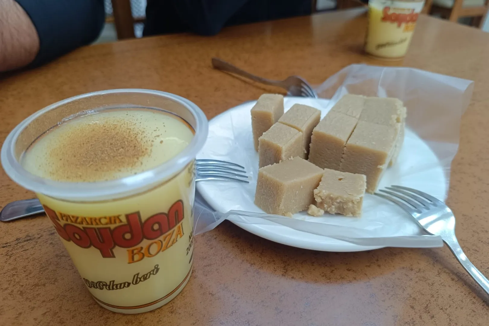 Kış mevsiminin habercisi olarak görülen boza, Pazaryeri'nde soğuk akşamlarda Pazarcık Helvası ve tarçın eşliğinde sofraların vazgeçilmezi olmayı sürdürüyor.