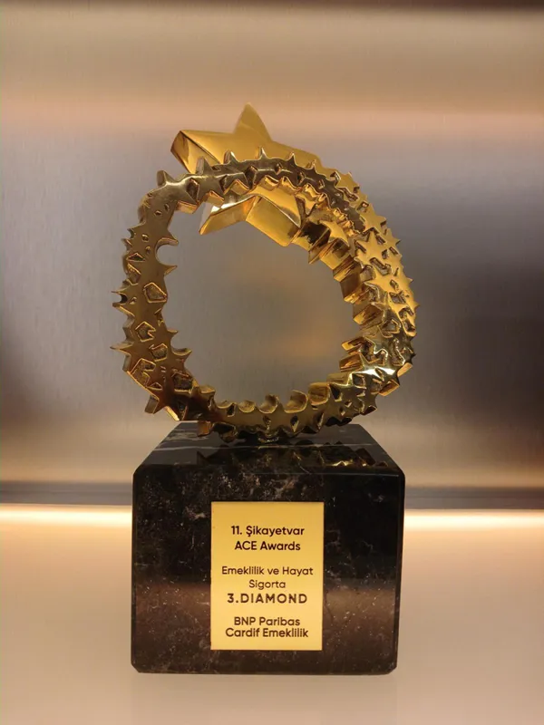 BNP Paribas Cardif Emeklilik, müşteri memnuniyeti başarısıyla geçen yıl olduğu gibi bu yıl da zirveye oturdu! ŞikayetvarA.C.E.Awards'ın kazananları arasında yer alan BNP Paribas Cardif Emeklilik, Emeklilik kategorisinde yarışan şirketler arasında 1'inci olarak Diamond Ödülü'nü almaya hak kazandı.