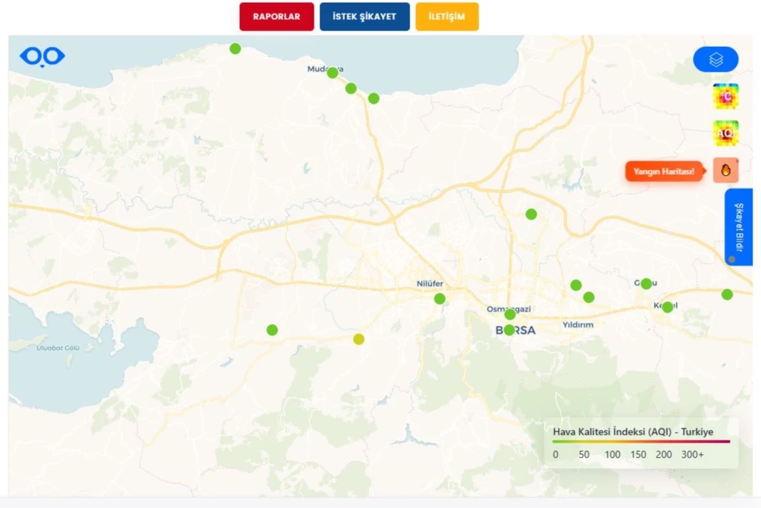 BURSA (İGFA) - Bursa'nın daha sağlıklı ve daha yeşil olması için çalışmalarını aralıksız sürdüren Büyükşehir Belediyesi; havası ve suyu temiz bir kent için teknoloji kullanmaya devam ediyor. Geçtiğimiz aylarda hava kirliliği parametrelerinin ve gürültü kirliliğinin tespitine yönelik mobil izleme ağı oluşturan ve mobil ekiplerle 14 ilçede çevresel gürültü ölçümleri yapan Büyükşehir Belediyesi, hava kalitesi izleme sistemine yangın izleme sistemini de entegre etti.