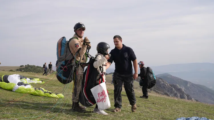"Geleceğe Nefes Olsun, Gürsu Yeniden Yeşersin" sloganıyla düzenlenen etkinlik, kurumların ve gönüllü yamaç paraşütçülerin ortak çabasına örnek olurken, bazı öğrenciler de pilotlar eşliğinde uçuş deneyimi yaşadı.