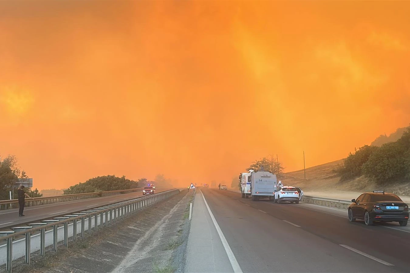Yangının yerleşim alanlarına 10 metreye kadar yaklaşması ve bir akaryakıt istasyonu ile tavuk çiftliğini tehdit etmesi üzerine, Bursa-Yenişehir karayolu bir süre trafiğe kapatıldı.