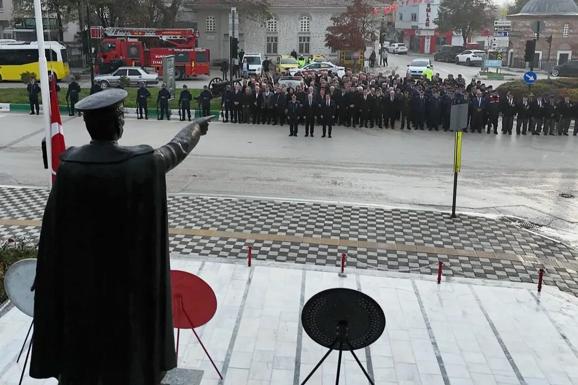Bursa'nın Yenişehi ilçesinde saat 9'u 5 geçe sirenlerin çalmasıyla adeta zaman durdu. Gazi Mustafa Kemal Atatürk, ebediyete irtihalinin 87'nci yılında Heykel Meydanı'nda anıldı.
