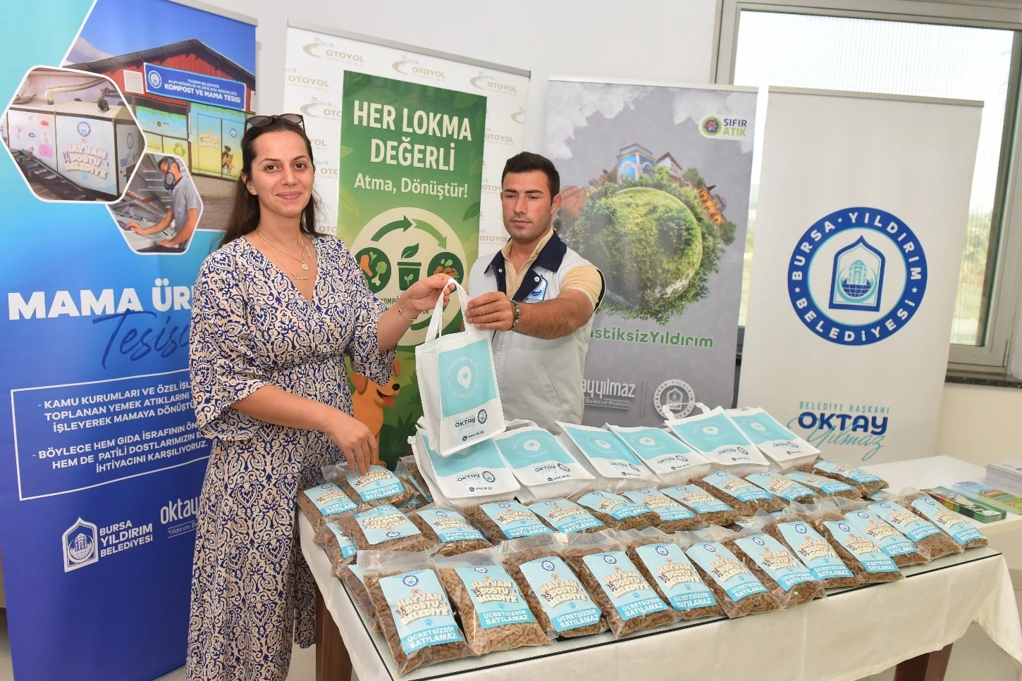 Yıldırım Belediye Başkanı Oktay Yılmaz, Bursa'ya kazandırdıkları Mama Üretim Tesisi ile hem israfı önlediklerini hem de sokak hayvanlarının beslenme ihtiyaçlarını karşıladıklarını belirterek, "Cumhurbaşkanımızın kıymetli eşi Emine Erdoğan Hanımefendinin himaye ettikleri sıfır atık çalışmalarına, biz de Yıldırım Belediyesi olarak 12 farklı proje ile destek veriyoruz. Bu projelerimizden bir tanesi de mama üretim tesisimiz. Bu tesisimiz ile birlikte de çeşitli fabrikalardan, lokantalardan, öğrenci yurtlarından topladığımız atık yemekleri burada kedi ve köpek maması olarak üretiyoruz. Hem kendi hayvan barınağımızda bunları değerlendiriyoruz hem de evinde patili can besleyen kıymetli hemşehrilerimizle bu mamaları paylaşıyoruz. Bu noktadaki işbirliklerimizi genişletmeye devam ediyoruz. Son olarak Otoyol Yatırım İşletmeleri A.Ş ile de işbirliği protokolü imzaladık. Önümüzdeki süreçte de yeni işbirlikleri ile hem sıfır atık hem de mama üretimi çalışmalarımızı sürdüreceğiz" ifadelerini kullandı.