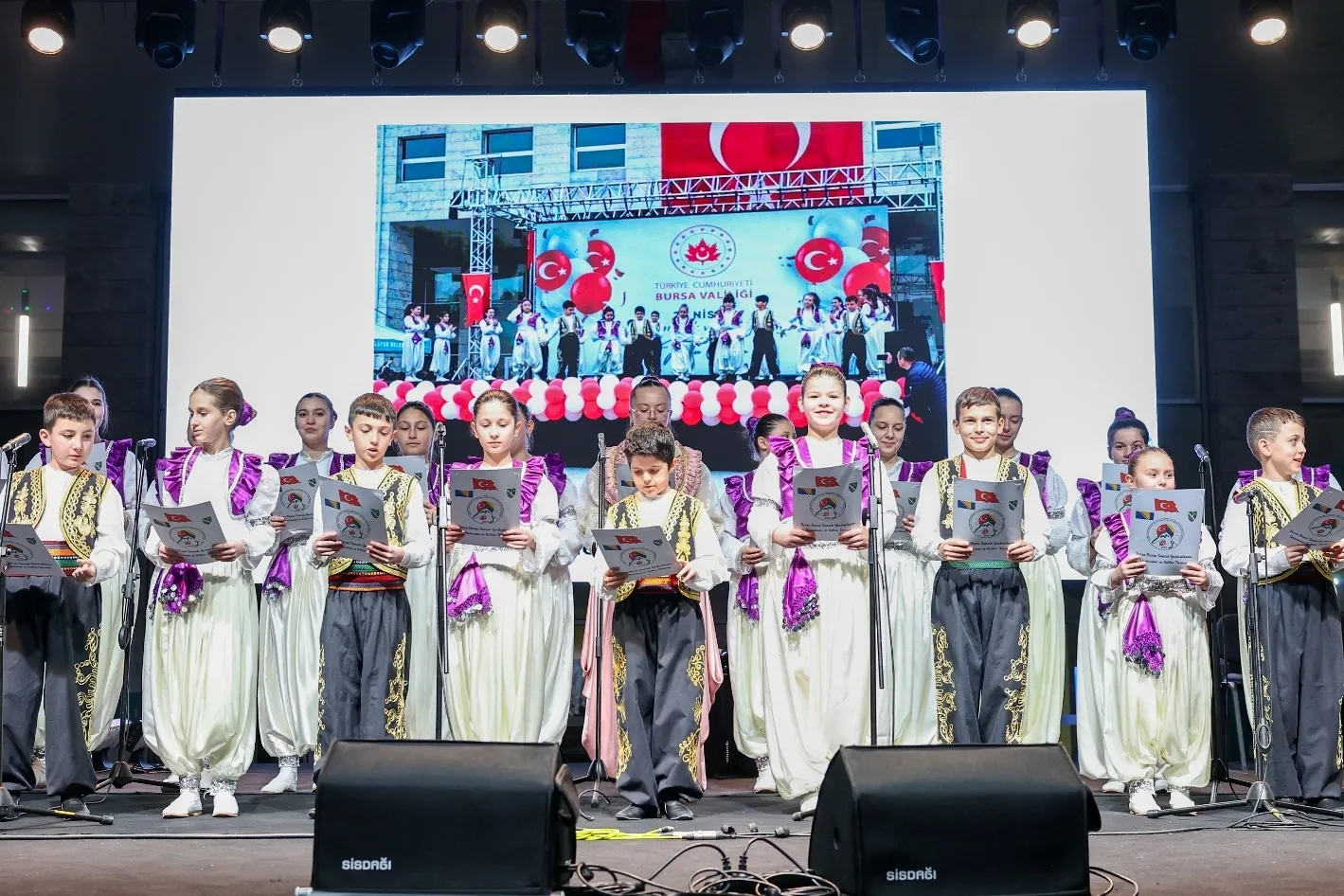 Gecede, Bursa Bosna Sancak Yardımlaşma Dayanışma ve Kültür Derneği'nin gençlerden oluşan folklor ekibi sahne aldı. Balkanların zengin müzik kültürlerinden örnekler sunan ekip, şarkıların ardından sergiledikleri yöresel dans performanslarıyla da alanı dolduran izleyicilerden tam not aldı.