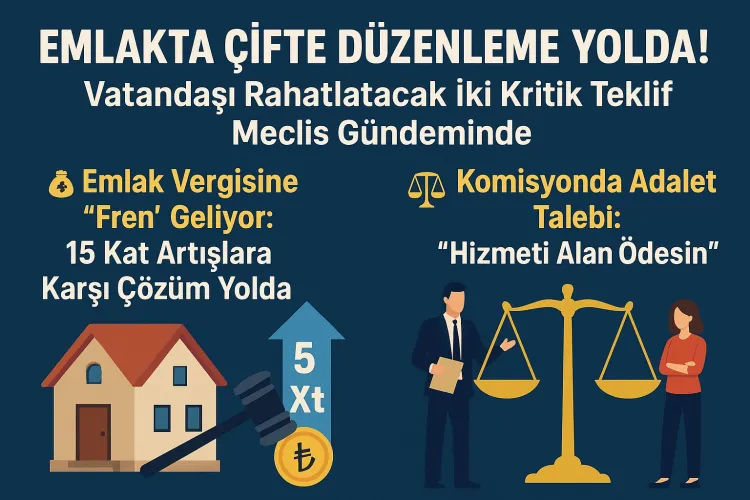 Emlak vergilerinde makul bir denge kurulmasının yanı sıra, emlakçı komisyonu düzenlemesinin de aynı yasa teklifi içinde ele alınması talep ediliyor.