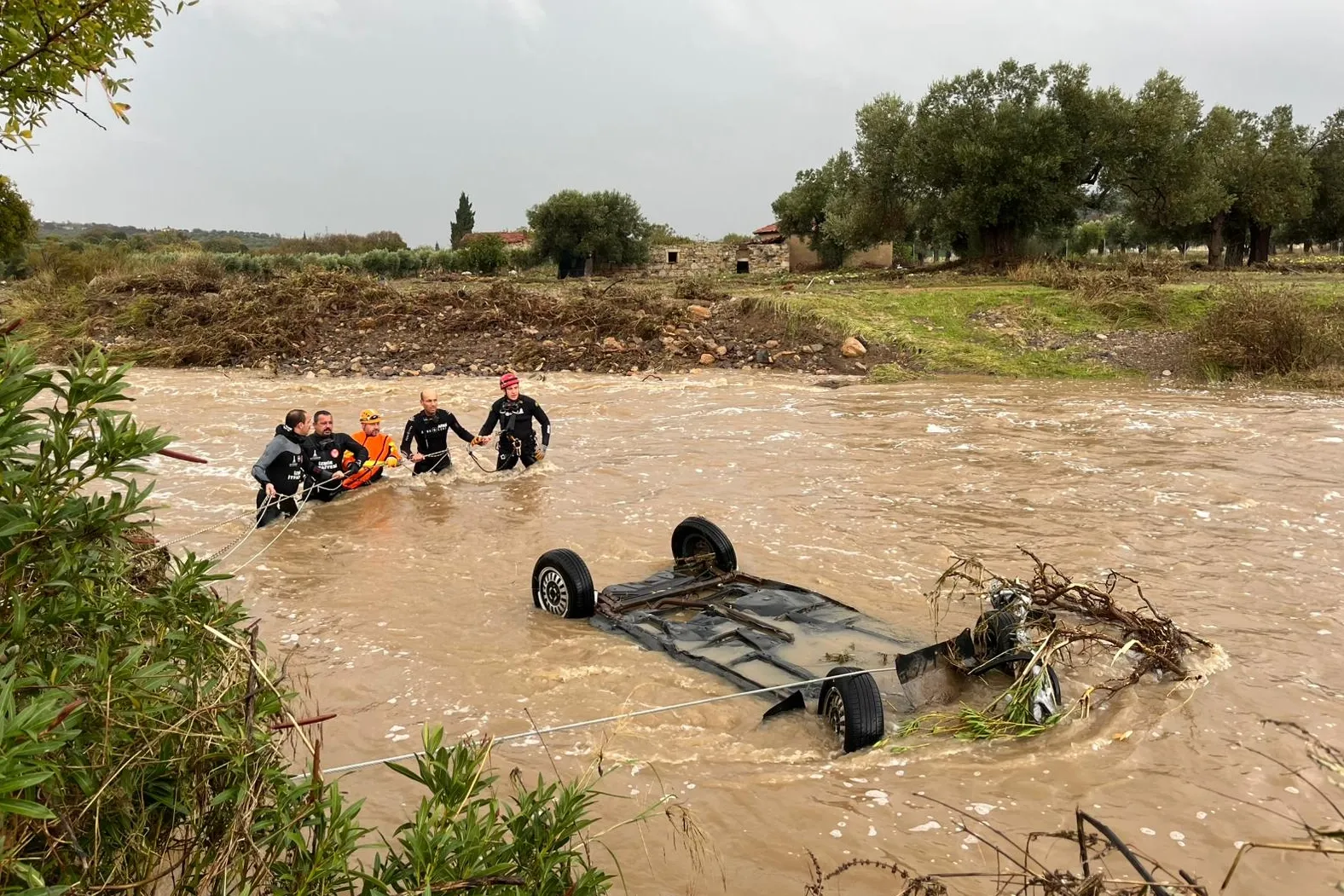 Yağışın etkili olduğu bölgede bir aracın sel sularına kapılarak Bucak Deresi'ne düştüğü öğrenildi. Araçta birilerinin olma ihtimaline karşı İzmir İtfaiyesi ekipleri araç içerisinde ve derede arama kurtarma çalışmaları sürdürüyor.