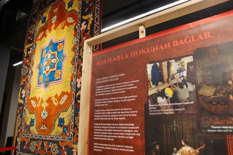 Serginin merkezinde, Johannes Vermeer'in ünlü eseri İnci Küpeli Kız'ı betimleyen bir duvar halısı bulunuyor. "Umut Halısı Projesi" kapsamında hazırlanan eser, 2023 yılında bölgeyi etkileyen depremlerin ardından Kahramanmaraş'ta yüzden fazla depremzede kadın tarafından elle dikildi.