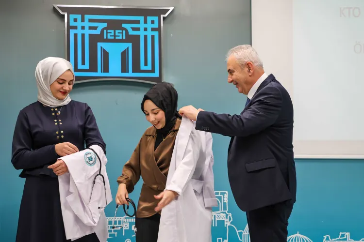 Konya Ticaret Odası (KTO) Karatay Üniversitesi Tıp Fakültesi 1. sınıf öğrencileri, beyaz önlüklerini üniversitede düzenlenen törende giyerek hekimlik yolunda ilk adımını attı.