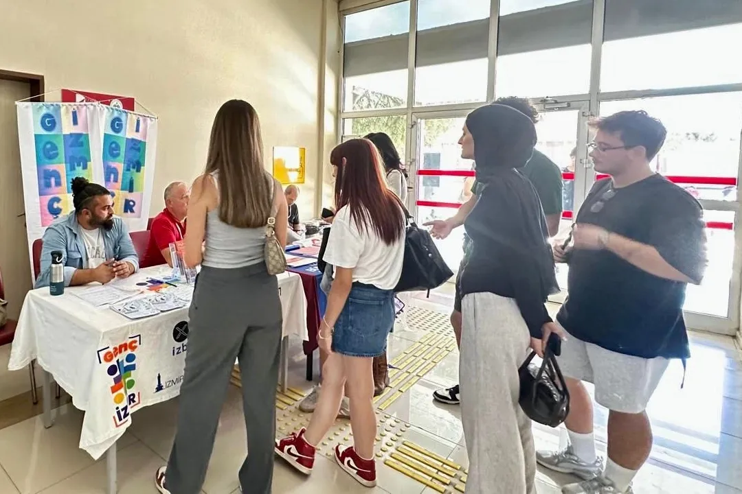 İzmir Büyükşehir Belediyesi bünyesinde faaliyet gösteren Genç İzmir ekipleri "Kampüsteyiz" sloganıyla üniversiteli öğrencilerle bir araya geliyor. Öğrenciler açılan stantlardan yeni dönemdeki kurslar, atölyeler ve gençlere yönelik projeler hakkında bilgi alıyor.