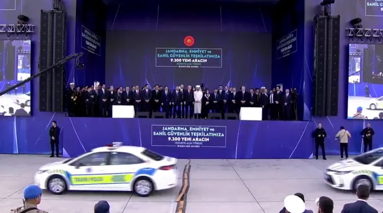 Cumhurbaşkanı Recep Tayyip Erdoğan, Jandarma, Emniyet ve Sahil Güvenlik teşkilatlarına toplam 9 bin 200 yeni aracın hizmete alındığını açıkladı. Erdoğan, güvenlik birimlerine verilen toplumsal desteğin en yüksek seviyeye çıktığını vurguladı.