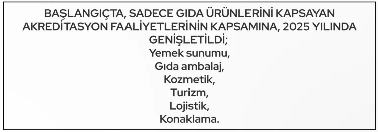 Başlangıçta yalnızca gıda ürünlerini kapsayan HAK akreditasyonu, 2025 yılında kapsam genişletme çalışmalarıyla yemek sunumu, gıda ambalajı, kozmetik, turizm, lojistik ve konaklama sektörlerini de içine aldı. Ayrıca, laboratuvar akreditasyonu uygulamasıyla ürünlerin sağlık, hijyen, güvenlik ve kalite standartlarının dini kurallara uygunluğu tarafsız laboratuvar analizleriyle doğrulanıyor.