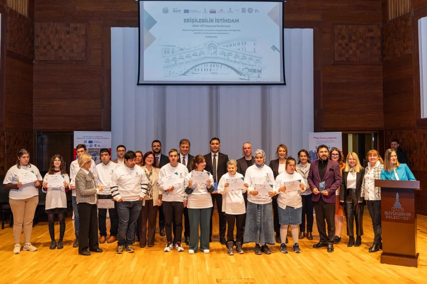 İzmir Büyükşehir Belediyesi destekli IDEA-VET projesi, zihinsel engelli bireylerin sosyal ve ekonomik hayata katılımını güçlendirdi. Kapanış konferansında 10 genç mutfak becerileri sertifikalarını alırken, proje çıktılarının kalıcı hale getirilmesi için Meslek Fabrikası adımları planlandı.