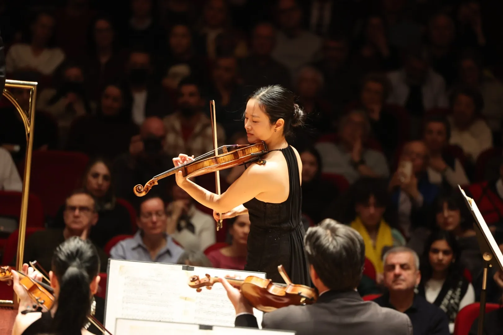 İzmir Büyükşehir Belediyesi Ahmed Adnan Saygun Sanat Merkezi'nde (AASSM) iki büyük isim aynı sahnede İzmirlilerle buluştu. İzmir Devlet Senfoni Orkestrası'nı (İZDSO) yöneten şef Christoph-Mathias Mueller ve keman virtüözü Bomsori Kim izleyenlerden tam not aldı.
