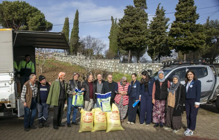 İzmir'de Güzelbahçe Belediyesi, Payamlı, Küçükkaya ve Çamlı köylerinde üretim yapan 152 çiftçiye toplam 9 ton gübre desteği sağlayarak tarımsal üretime katkı sundu.