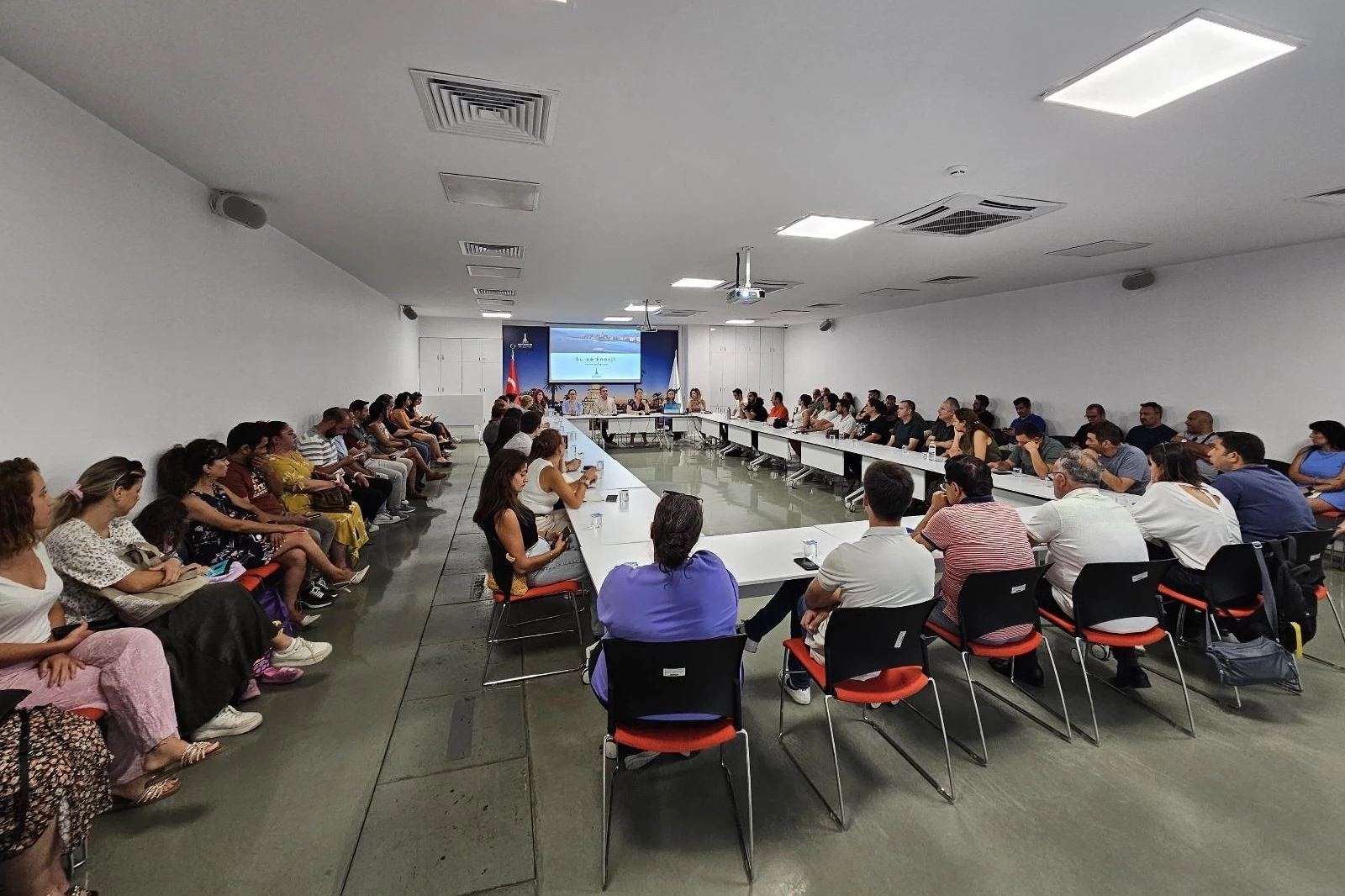 İzmir Büyükşehir Belediyesi İklim Değişikliği ve Sıfır Atık Dairesi Başkanlığı İklim Değişikliği ve Temiz Enerji Şube Müdürlüğü'nün kurum içi ve ilçe belediyelerine yönelik düzenlediği eğitimlerden biri de Kültürpark 1 No'lu Hol'deki Çetin Emeç Toplantı Salonu'nda oldu. "Su ve Enerji Yönetimi" başlıklı eğitimde iklim değişikliği ve enerji alanında yapılan çalışmalar, İzmir Büyükşehir Belediyesi'nin "Su ve Enerji Kaynakları Kullanım Talimatnamesi ve tasarruf konuları ele alındı.