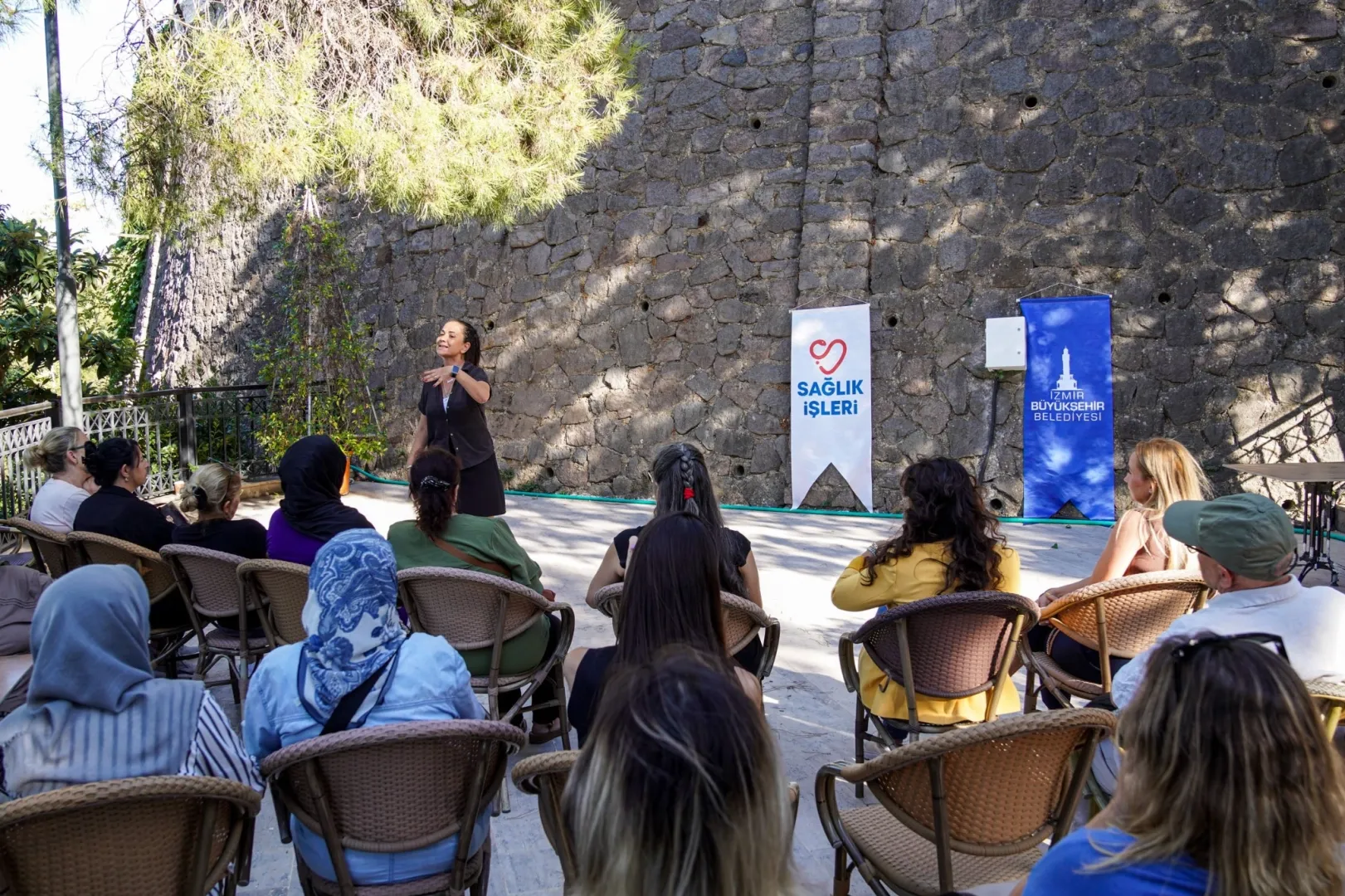 İZMİR (İGFA) - İzmir Büyükşehir Belediyesi, sağlık alanında bilinçlendirme ve koruyucu eğitim faaliyetlerini toplumun her kesimine ulaştırmaya devam ediyor. Bu kapsamda, Sağlık Eğitimleri Şube Müdürlüğü tarafından İzmir'in tarihi dokusunun önemli simgelerinden biri olan ve yakın zamanda İzmir Büyükşehir Belediyesi tarafından sosyal yaşam alanına dönüştürülen Şato'nun teraslarında "Bizim Mahalle Sohbetleri" başlatıldı.