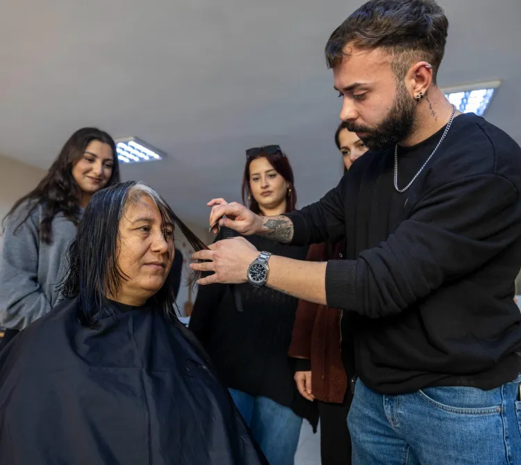 Her ay farklı bir mahallede, muhtarlıkların belirlediği alanlarda gerçekleştirilen uygulama kapsamında kadınlara ücretsiz saç kesimi ve fön hizmeti sunuluyor. Hizmetin ardından uzman personel tarafından kadın sağlığı, kadın hakları, yasal haklar ve toplumsal cinsiyet eşitliği konularında bilgi veriliyor. Kuaförlük ve eğitim hizmetlerinden yararlanmak isteyen kadınlar, mahalle muhtarlıkları aracılığıyla talep oluşturup randevu alabiliyor. Hizmet bu hafta Gaziemir'in Emrez Mahallesi'ndeydi. Uygulamaya ayrıca meslek yüksekokullarının saç bakımı ve güzellik hizmetleri programında eğitim alan öğrenciler ve eğitmenleri de dâhil edildi. Böylece hem daha fazla kadına hizmet ulaştırılıyor hem de öğrenciler uygulamalı eğitim imkânı buluyor.