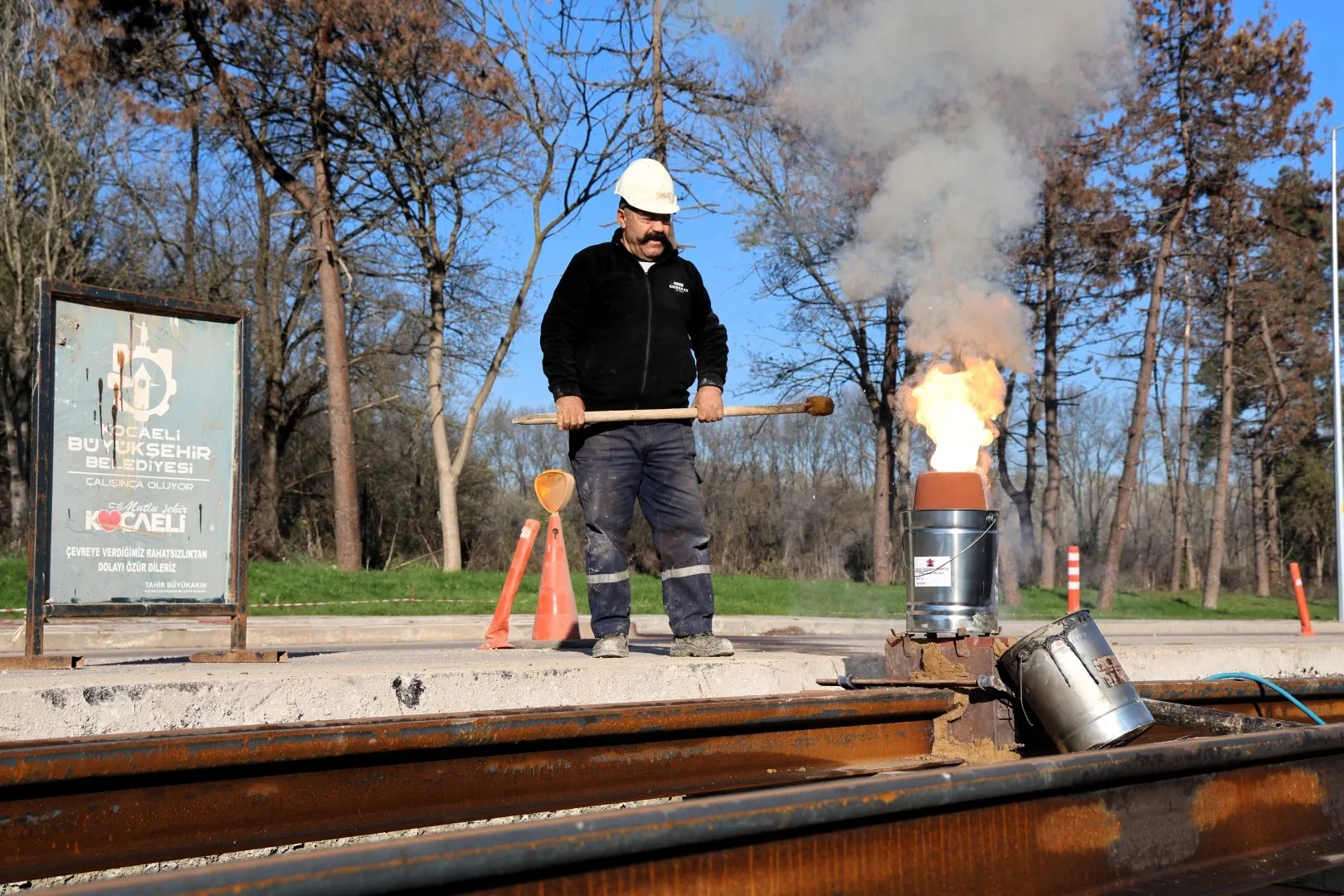 Kocaeli Büyükşehir Belediyesi, raylı sistem ağını bu kez "Kartepe Tramvay Hattı" ile güçlendiriyor. Kenti demir ağlarla ören Büyükşehir, bu hatta döşenen raylarda kaynak işlemlerine başladı.