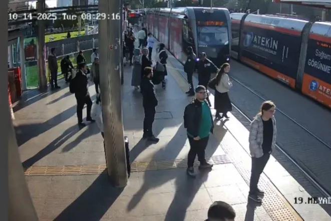 Cumhuriyet Meydanı Raylı Sistem İstasyonu'nda karşıya geçmek isteyen genç bir yolcu, kulaklık taktığı için yaklaşan tramvayı fark etmedi. O esnada görev başında olan güvenlik personelinin hızlı refleksi sayesinde genç yolcu raylara girmeden son anda durdurularak olası bir kazadan kurtarıldı.