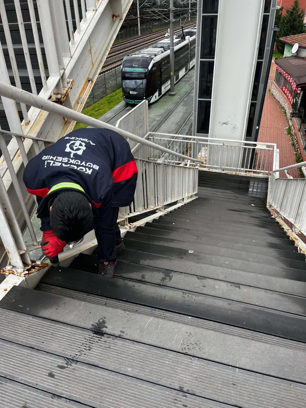 KOCAELİ (İGFA) - Kocaeli Büyükşehir Belediyesi bünyesindeki Yol ve Bakım Dairesi Başkanlığı'na bağlı Tesisler Şube Müdürlüğü ekipleri, İzmit ilçesi Eğitim Kampüsü Tramvay Durağı üstgeçidini elden geçirdi.
