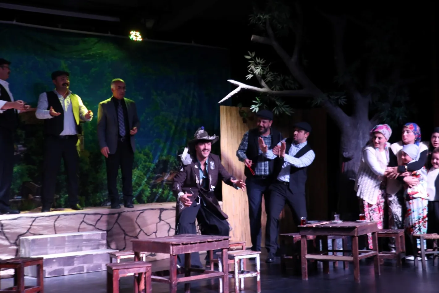 BURSA (İGFA) - İnegöl Belediyesi Şehir Tiyatrosunun 21'inci oyunu olarak Mayıs ayında sahneye taşınan "Komşu Köyün Delisi" tiyatro gösterisi, İnegöllü sanatseverler tarafından büyük beğeni toplamıştı. Üst üste yapılan gösterimlerde her hafta kapalı gişe oynanan oyun, yaz döneminin ardından kültür sanat sezonuyla birlikte yeniden sahneye döndü. Üstün Dökmen'in yazıp Volkan Derman'ın yönettiği "Komşu Köyün Delisi" tiyatro gösterisi, Ekim ayı kültür sanat etkinlikleri kapsamında Cuma akşamı yeniden sahnelendi. İnegöl'de kültür ve sanatın merkezi konumundaki Beşinci Mevsim Kültür Sanat Merkezinde sahnelenen oyun yoğun ilgiyle karşılandı. Tüm biletlerin tükendiği oyun, yeni sezona da kapalı gişe başladı.