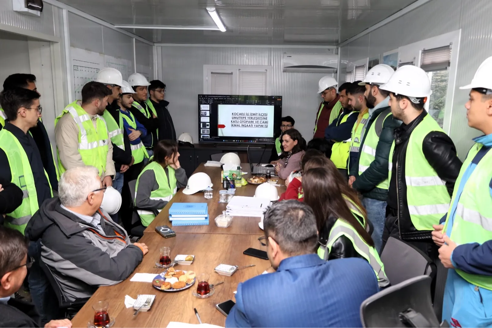 KOCAELİ (İGFA) - Kocaeli Üniversitesi İnşaat Mühendisliği öğrencileri, Kocaeli Büyükşehir Belediyesi'nin Umuttepe Kampüsüne kazandıracağı cami ve otopark projesini teknik gezi kapsamında inceledi. Büyükşehir Belediyesi Fen İşleri Dairesi Başkanlığı'na bağlı teknik personeller tarafından proje hakkında detaylı bilgilendirilen öğrenciler, proje hakkında sorularını da Büyükşehir personellerine yöneltti. Gezi öncesi şantiye alanındaki toplantı salonunda öğrencilere proje hakkında detaylı sunum yapıldı.