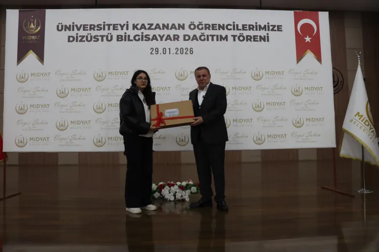 MARDİN (İGFA) - Sosyal belediyecilik anlayışıyla eğitimde fırsat eşitliğini güçlendirmeyi hedefleyen Midyat Belediyesi, "Üniversitelilere Bilgisayar Desteği" projesi kapsamında hak sahibi öğrencileri yalnız bırakmadı. Proje çerçevesinde temin edilen 252 dizüstü bilgisayar, düzenlenen törenle öğrencilere teslim edildi.