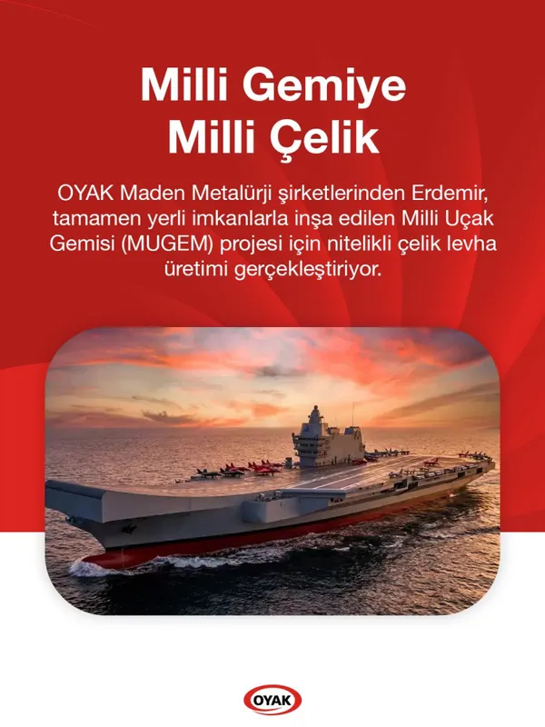ANKARA (İGFA) - Türkiye'nin savunma sanayisinde stratejik öneme sahip Milli Uçak Gemisi (MUGEM) projesinde kritik bir adım daha atıldı. Geminin inşasında kullanılacak yaklaşık 40 bin ton gemi sacı, OYAK'a bağlı Türkiye'nin lider entegre çelik üreticisi Erdemir tarafından tedarik edilecek.