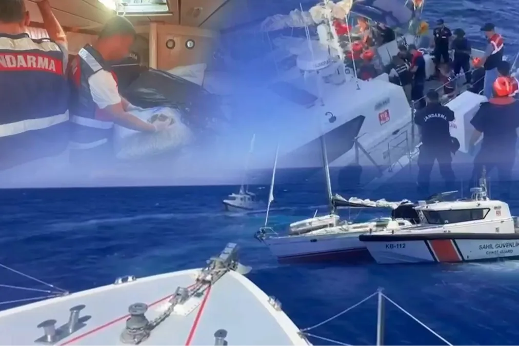 Muğla İl Jandarma Komutanlığı ve Sahil Güvenlik Güney Ege Grup Komutanlığı'nın koordineli çalışması sonucu, uluslararası uyuşturucu tacirlerine ait bir tekne JİHA'larla saniye saniye izlendi ve denizden operasyon düzenlendi.