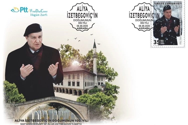 ANKARA (İGFA) - PTT AŞ, 8 Ağustos 2025 tarihinde "Aliya İZETBEGOVİÇ'in Doğumunun 100.Yılı" konulu 35 TL (36 x 52 mm boyutunda) bedelli anma pulu ile söz konusu pula ait 70 TL bedelli ilkgün zarfını abone sayısı kadar PTT iş yerlerinde ve PTT AŞ'ye ait www.filateli.gov.tr web adresinde satışa sundu.