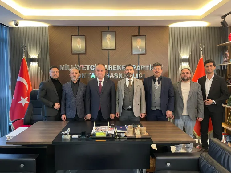 KONYA (İGFA) - Konya'da Ticarette Birlik Topluluğu'ndan MHP İl Başkanlığı'na gerçekleşen ziyarette, ticaret dünyasının güncel durumu, yerel ve bölgesel ekonomik gelişmeler ile iş dünyasının beklentileri üzerine karşılıklı fikir alışverişinde bulunuldu.