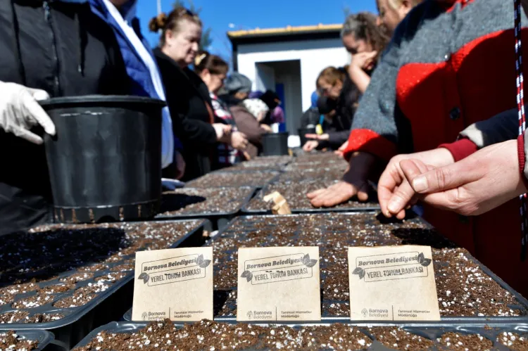 Bornova Belediyesi'nin Evka 4 Kent Bostanı'nda kadın üreticiler, yerel tohum bahçelerinden elde edilen tohumlarını ekerek yaz sezonu hazırlıklarına başladı; üreticilere tohum ekimi ve çimlenme süreçleri hakkında eğitim verildi.