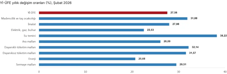 Üretici enflasyonu Şubat’ta yıllık yüzde 27,56 oldu... Su teminindeki yıllık artış yerini koruyor