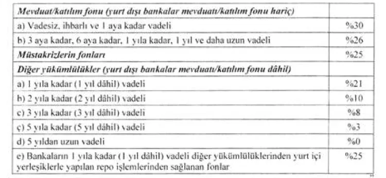 ANKARA (İGFA) - Türkiye Cumhuriyet Merkez Bankası (TCMB)'nin bugün yayımlanan tebliği ile, 2013/15 sayılı Zorunlu Karşılıklar Tebliği'nin 4'üncü maddesinde yer alan "bankaların" ibaresi yürürlükten kaldırıldı. Düzenleme kapsamında ayrıca 6'ncı maddenin ikinci fıkrası tamamen değiştirilerek yabancı para yükümlülükler için geçerli olacak zorunlu karşılık oranları yeniden tanımlandı.