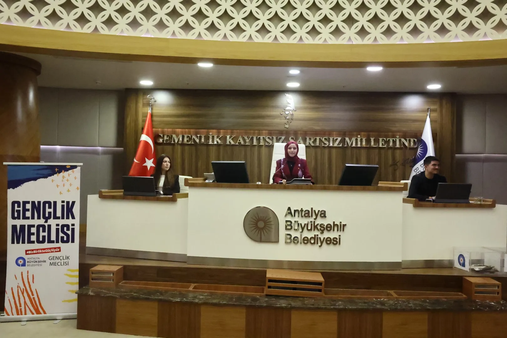 ANTALYA (İGFA) - Gençlik Meclisi 2025-2026 döneminin ilk toplantısına Antalya Büyükşehir Belediyesi Meclis Salonu’nda gerçekleştirdi. Toplantıya Antalya Büyükşehir Belediyesi Meclis Üyesi Nilüfer Deveci, Av. Müge Gezginci Uysal ve Başkan Danışmanı Mehmet Karavural da katıldı. Saygı Duruşu ve İstiklal Marşı’nın okunmasıyla açılan meclis oturumuna lise öğrencisiyken girdiği mecliste şimdi üniversite öğrencisi olan Erol Tenil başkanlık etti.