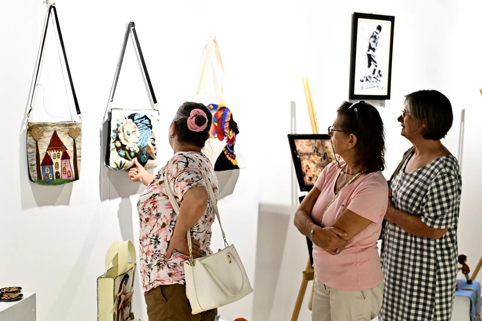 Sergi salonunda ayrıca her biri yaşlı evi üyelerinin elinden çıkan yağlıboya resimler, keçe işlemeli tablolar, su kabağından dekoratif eşyalar, amigurumi oyuncaklar, çantalar, rüzgâr çanları, çocuk ve yetişkin kıyafetleri ve aksesuarlar ziyaretçiler tarafından hayranlıkla incelendi.