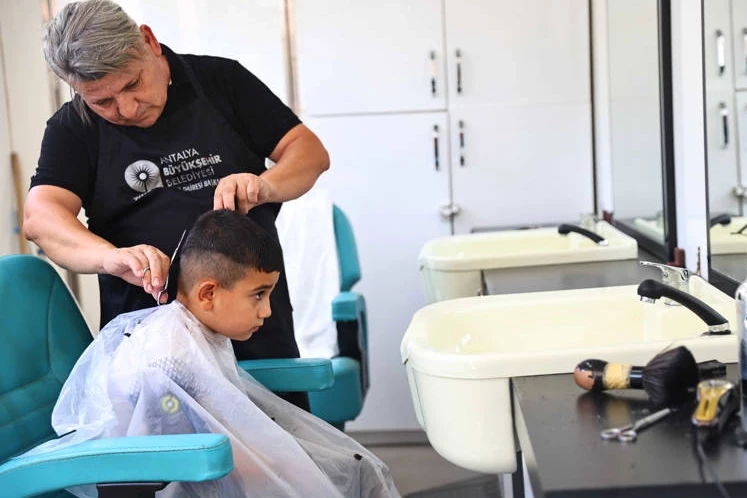 Antalya Büyükşehir Belediyesi, kuaför ve berber olmayan mahallelerde vatandaşlara ücretsiz saç kesimi ve kişisel bakım hizmeti sunuyor.