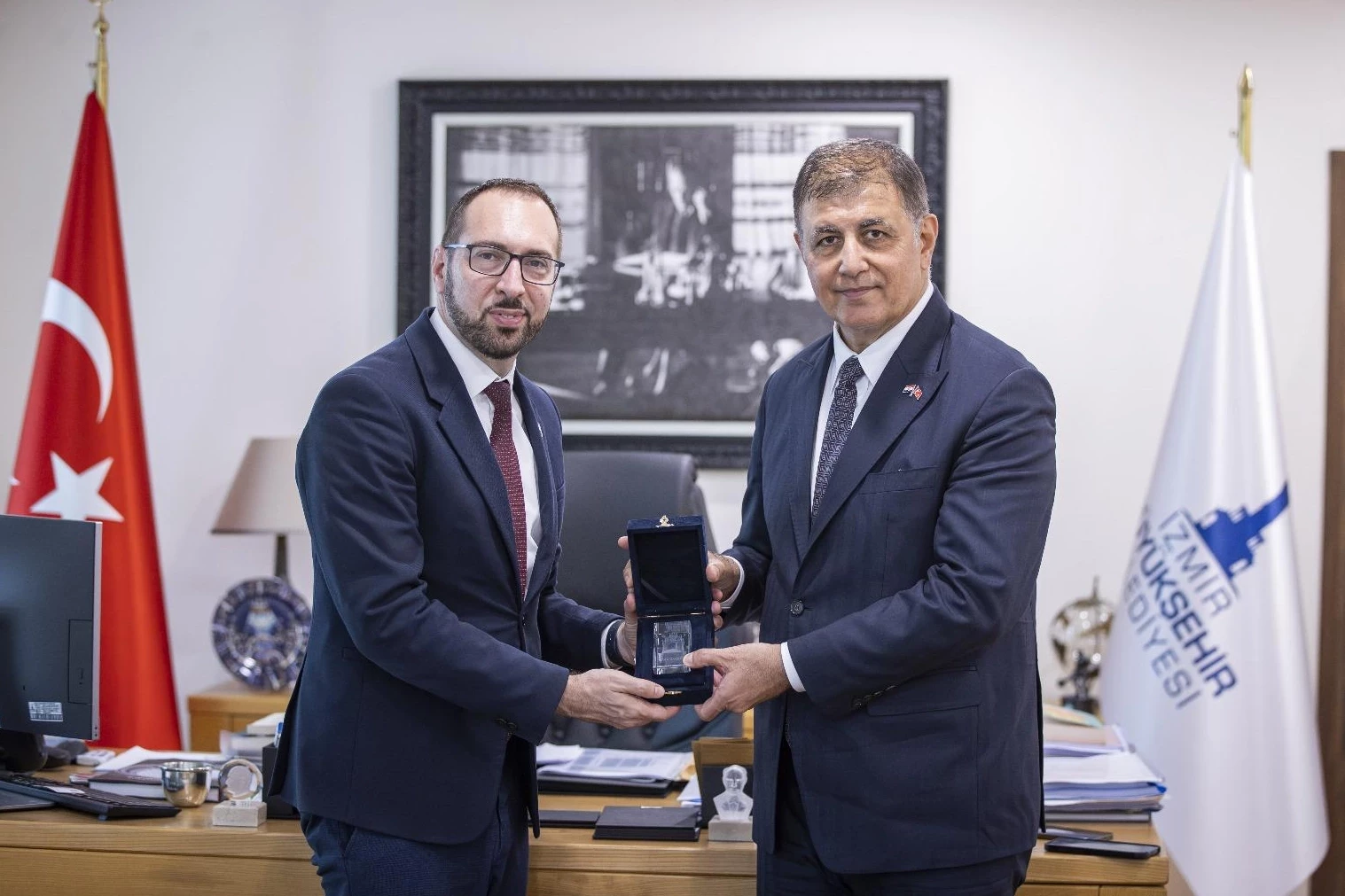 İZMİR (İGFA) - Dünyayı İzmir’de buluşturan İzmir Enternasyonal Fuarı için kente gelen konuk ülkelerin temsilcilerinin İzmir Büyükşehir Belediye Başkanı Dr. Cemil Tugay’a ziyaretleri sürüyor. Başkan Tugay, Belarus’un Ankara Büyükelçisi Anatoli Glaz ve sonrasında Hırvatistan’ın Zagreb Belediye Başkanı Tomislav Tomašević’i makamında ağırladı. Görüşmelerde karşılıklı ilişkiler gündeme geldi.