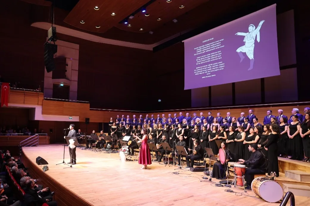 Bağlama ustası ve halk müziğinin büyük isimlerinden Musa Eroğlu'nun bestelediği "Mihriban" türküsünü seslendiren Akartürk’e, salondakiler hep bir ağızdan eşlik etti.