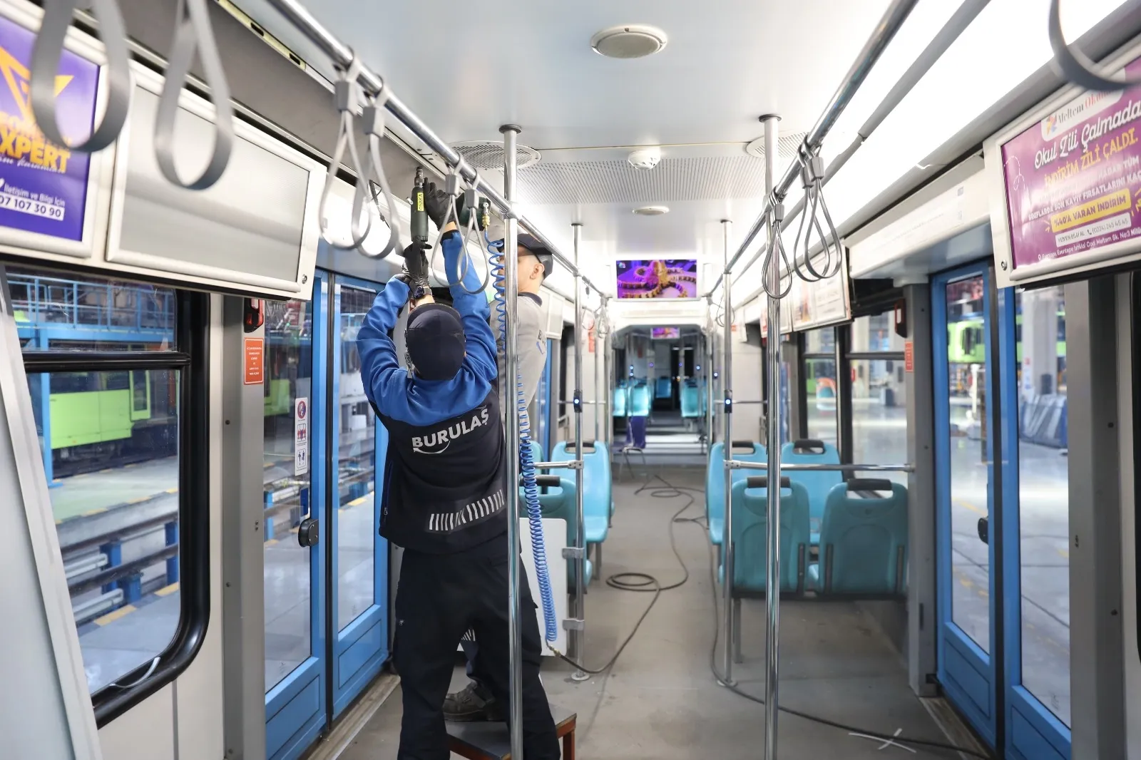 BURSA (İGFA) - Toplu taşıma hizmetlerini daha verimli ve sürdürülebilir hale getirmek için bakım ve onarım çalışmalarını kendi bünyesinde yürüten Büyükşehir Belediyesi’nin ulaşım şirketi BURULAŞ, tasarruf tedbirleri kapsamında araçlardaki dönüşümü de sağlıyor.