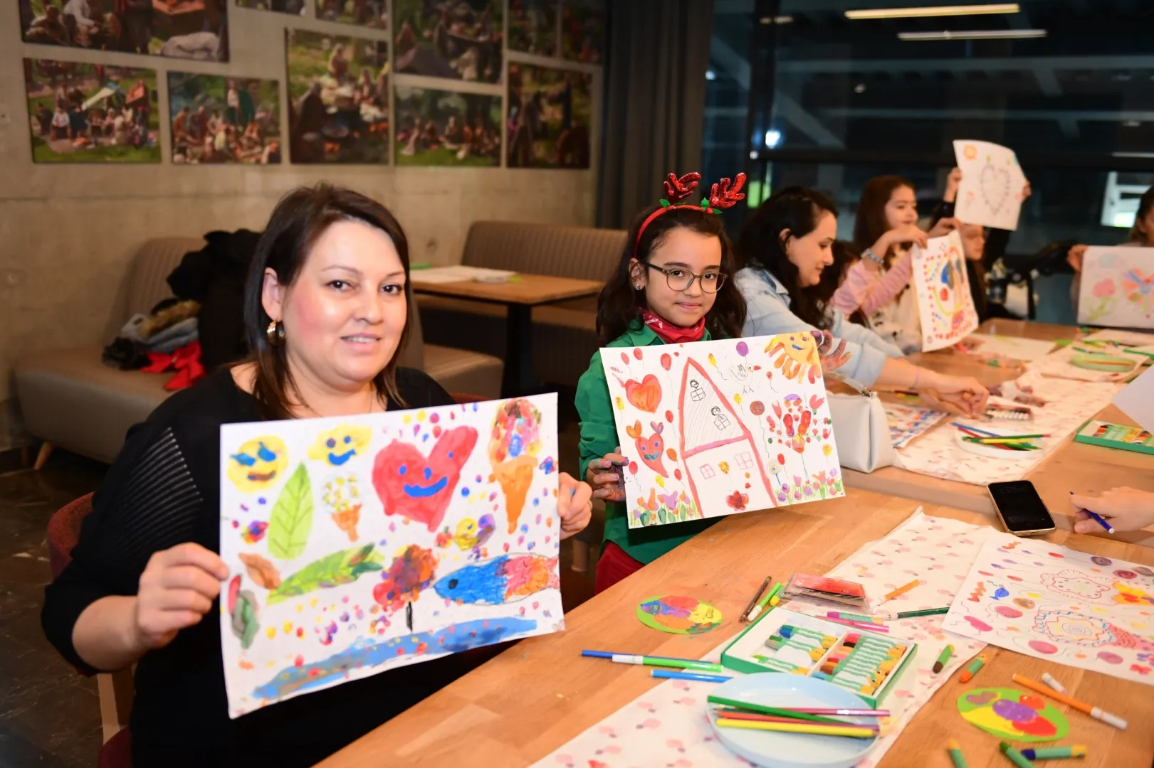 Etkinlik hakkında bilgiler veren Anne Çocuk Sanat Atölyesi Eğitmeni Simge Işıktaş Demir, “Bu atölyemizde anneler ve çocukların dünyayı birbirlerinin gözünden nasıl algıladıklarını sanat yoluyla keşfetmelerini amaçlıyoruz. Serbest resim çalışmasıyla ortak bir üretim süreci oluşturuyoruz. Aynı resim, farklı bakış açılarıyla bambaşka anlamlar kazanabiliyor. Çocuğun bir bulut olarak çizdiği figür, annede bir hayvana; çocuğun bir üçgen olarak resmettiği şekil, annede bir dondurmaya dönüşebiliyor. Aslında dünyayı birbirinin gözlerinden nasıl keşfettiklerini görmek için bu çalışmayı yapıyoruz. Amacımız, anne ve çocukları ortak bir paydada buluşturarak birlikte anlamlı bir sanat eseri ortaya çıkarmak.” diye konuştu.