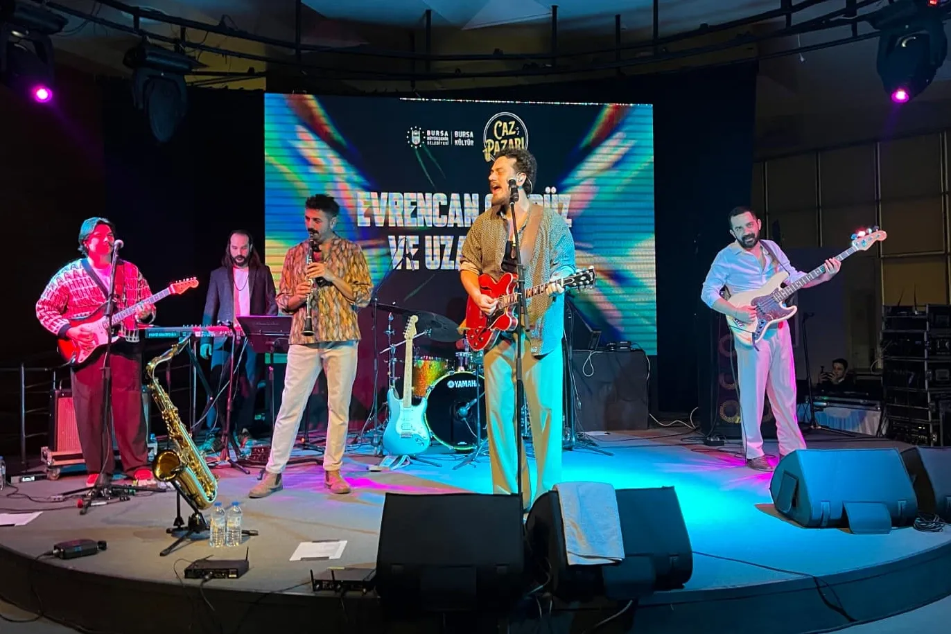 Bursa Büyükşehir Belediyesi’nin düzenlediği ‘Caz Pazarı Konserleri’ kapsamında sahne alan Evrencan Gündüz ve Uzaylılar, blues, rock ve cazın iç içe geçtiği repertuvarlarıyla müzikseverlerden büyük beğeni topladı.