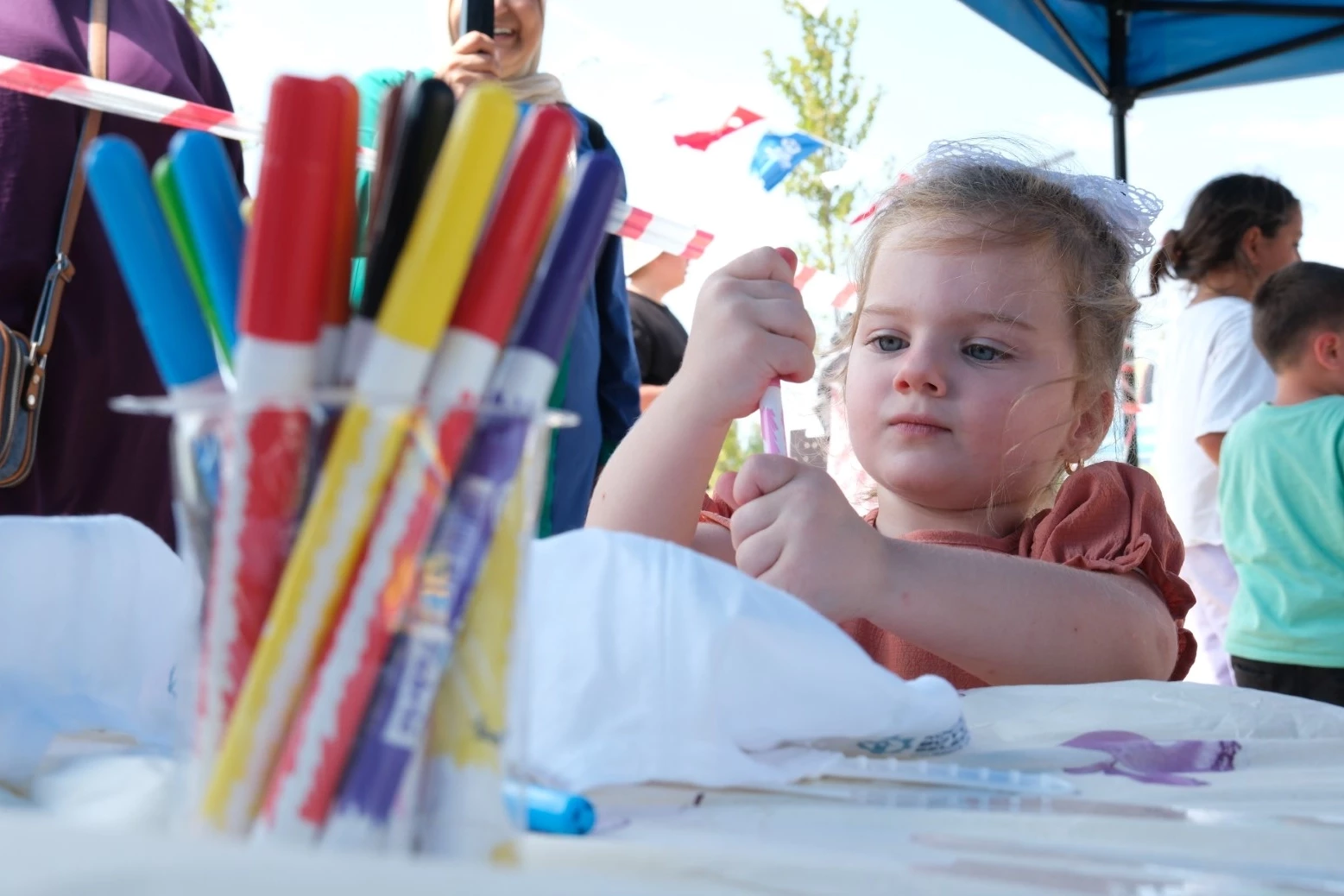Etkinlikte çocukların motor becerilerini ve el yeteneklerini geliştirmeye yönelik kurulan atölyeler büyük ilgi gördü. Kalemlik ve şapka boyama, anahtarlık yapım, çim adam atölyeleri miniklerden yoğun ilgi gördü.