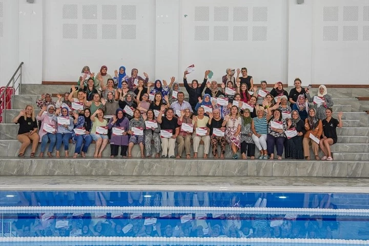 Denizli Büyükşehir Belediyesi tarafından kadınlara yönelik olarak hayata geçirilen “Yüzme Bilmeyen Kalmasın” projesi tüm hızıyla sürüyor. Proje kapsamında, Anafartalar-Dokuzkavaklar Kapalı Yüzme Havuzu’nda Pınarkent, Küçükdere, Yeniköy ve Irlıganlı mahallelerinde ikamet eden yaklaşık 80 kadın kursiyer, haftanın iki günü aldıkları eğitimlerle temel yüzme becerilerini kazandı.