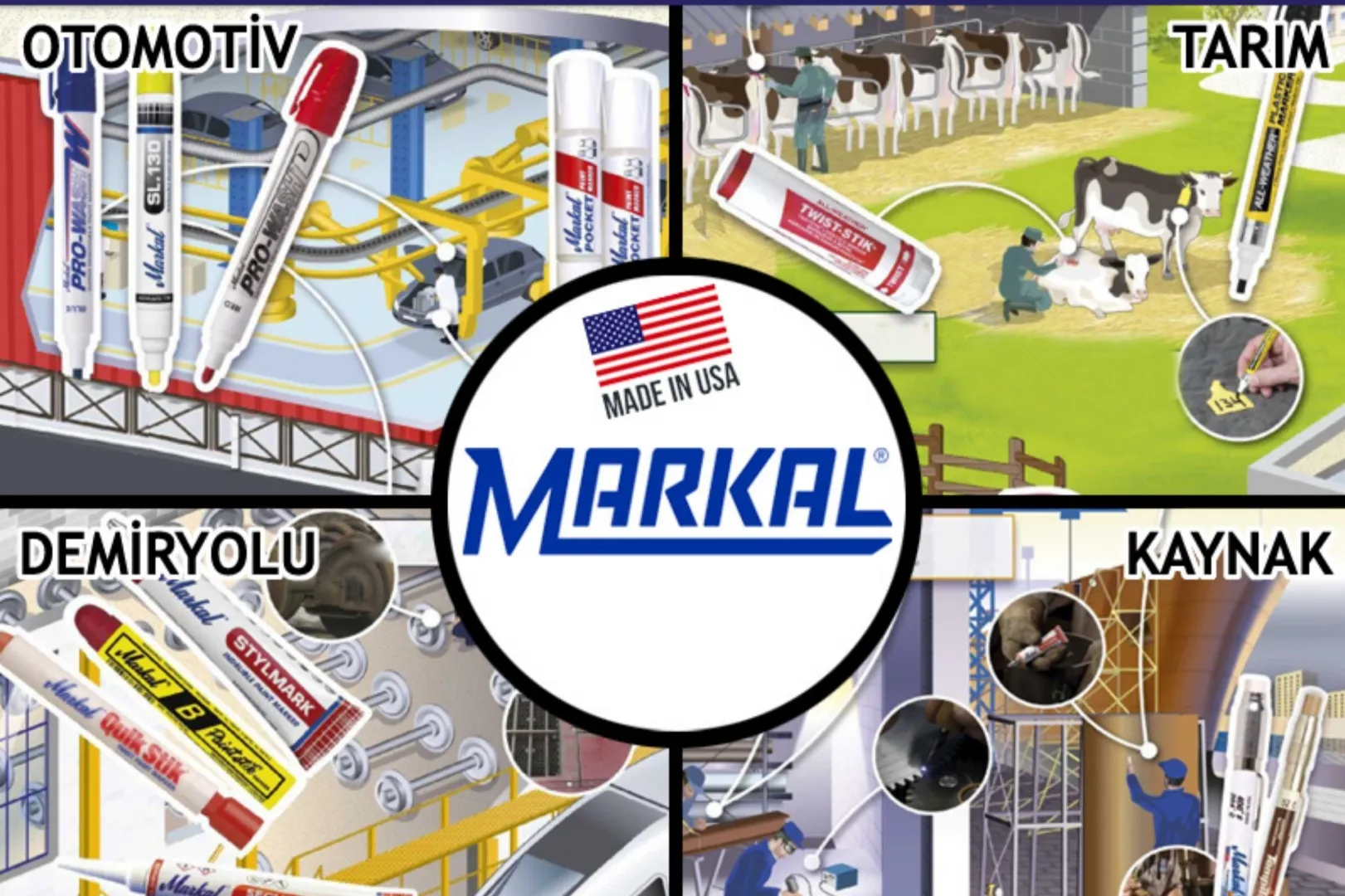 Yağlı, paslı, ıslak, kızgın veya pürüzlü yüzeylerde bile %100 kalıcı işaretleme sağlayan Amerikan MARKAL endüstri yel markörleri, 2005’ten bu yana Türkiye’de Habib Makina güvencesiyle ağır sanayinin çözüm ortağı olmaya devam ediyor. MARKAL; çelik, gemi inşaatı, enerji, petrol/doğalgaz ve nükleer sektörlerinin kritik ihtiyaçlarına yönelik geniş ürün gamı ve yüksek performansa sahip sertifikalı çözümleri ile dikkat çekiyor.