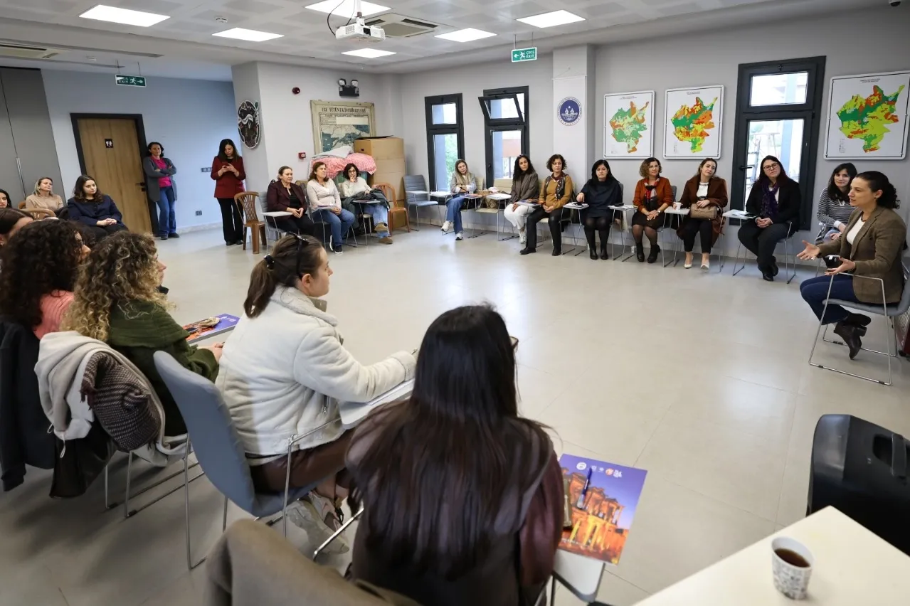 İZMİR (İGFA) - Efes Selçuk Belediyesi, “İzmir’de Kadına Yönelik Şiddetle Mücadelede İş Birliğinin Artırılması” toplantı dizisinin 22’ncisine Efes Tarlası Yaşam Köyü’nde ev sahipliği yaptı. Etkinliğe, İzmir’in çeşitli ilçe belediyelerinde kadın ve aile odaklı çalışmalar yürüten birimlerde görev yapan 35 kadın ile Efes Selçuk Belediyesi Kadın ve Aile Hizmetleri Müdürlüğü çalışanları katıldı.