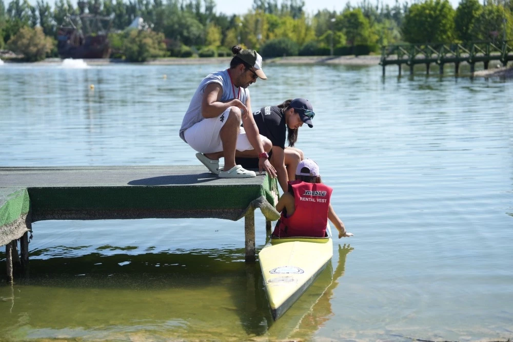 Gençlik ve Spor Hizmetleri Dairesi Başkanlığı tarafından organize edilen eğitimlerde, 8 ile 17 yaş aralığındaki çocuklar, su sporlarıyla tanışarak hem eğleniyor hem de temel kano becerilerini öğreniyor.